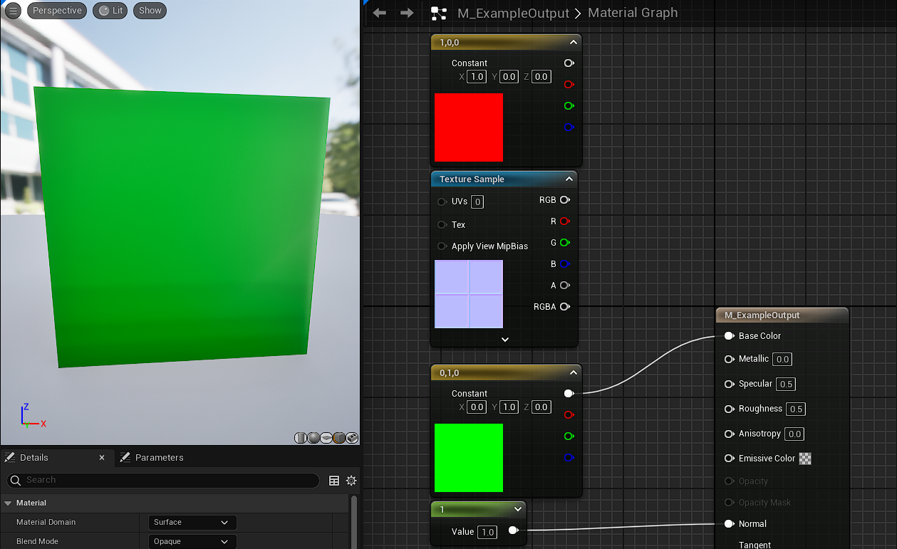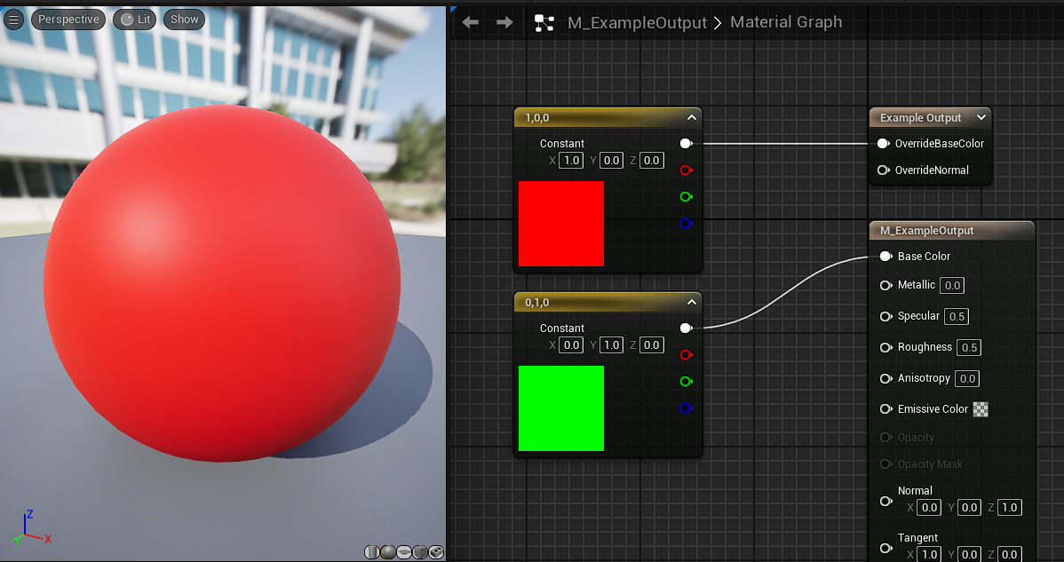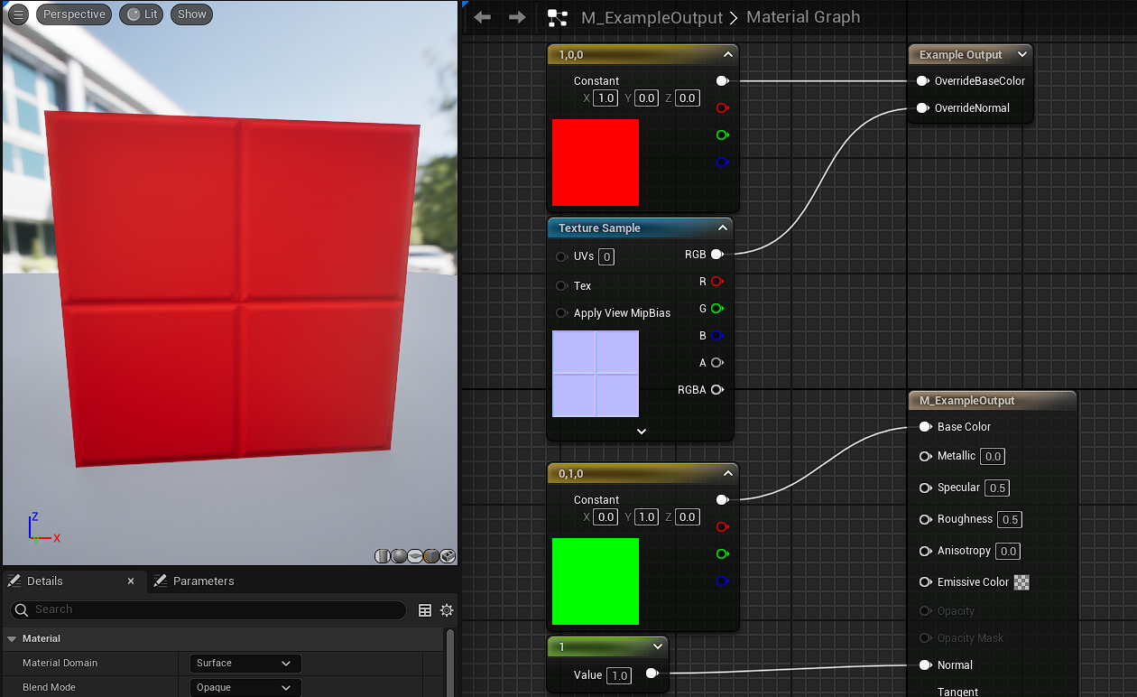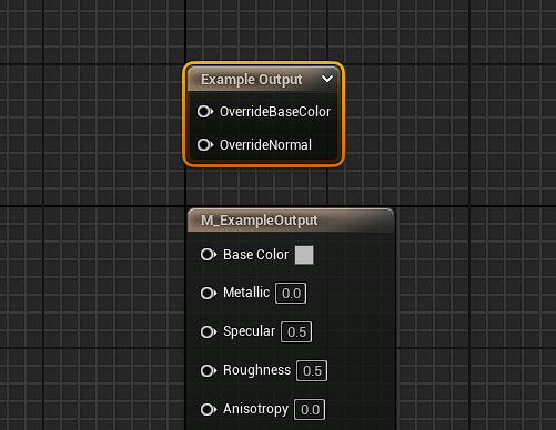 This enables us to use NUM_MATERIAL_OUTPUTS_GETEXAMPLEOUTPUT to easily check if the Custom Output node is present in the material graph.