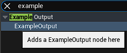 In the constructor you’re only interested in NAME_Output(LOCTEXT( "ExampleCategory", "ExampleCategory" )) for the category that will show up when searching up the node in the material graph.
