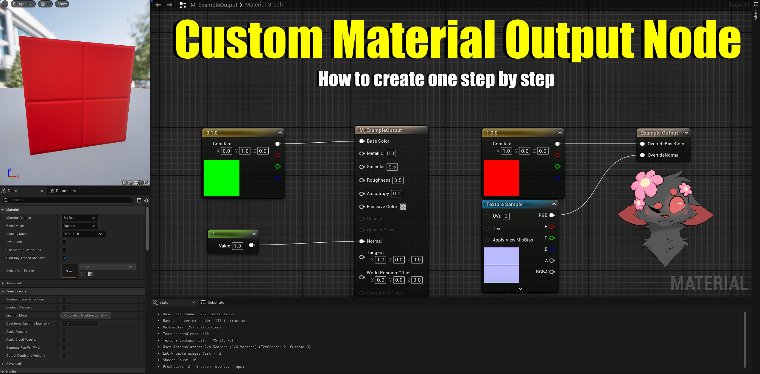 Learn how to make a fully custom material output node with no source edits (only engine shaders)